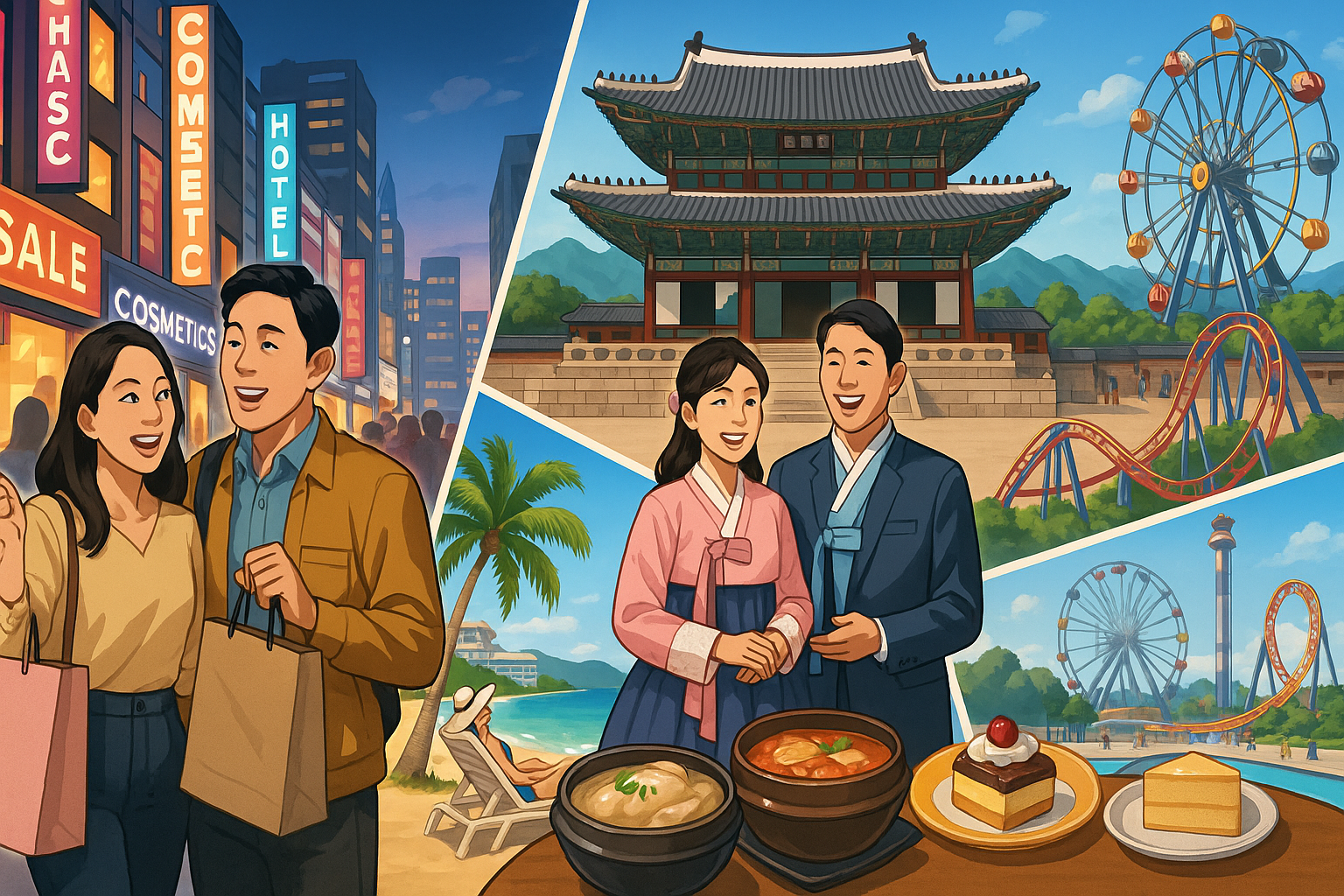 – 놀거리: K-팝 공연·전시, 테마파크, 한복체험·근교 레저(요트·ATV), 인천 송도 스카이라인·부산 야경 투어까지. 팁: 날씨 변수에 대비한 실내 대체 코스를 반드시 확보하세요.